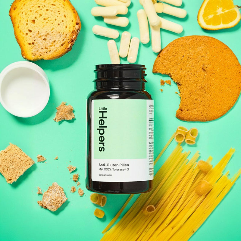Our Anti-Gluten Pills contain enzymes that break down gluten to the point that your body doesn't react to them anymore.